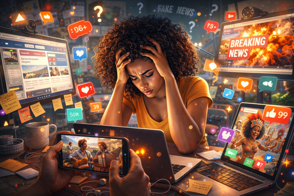 Hoje, vídeos, textos e imagens circulam rapidamente nas redes. Uma festa popular de uma pequena cidade pode se tornar conhecida nacionalmente.