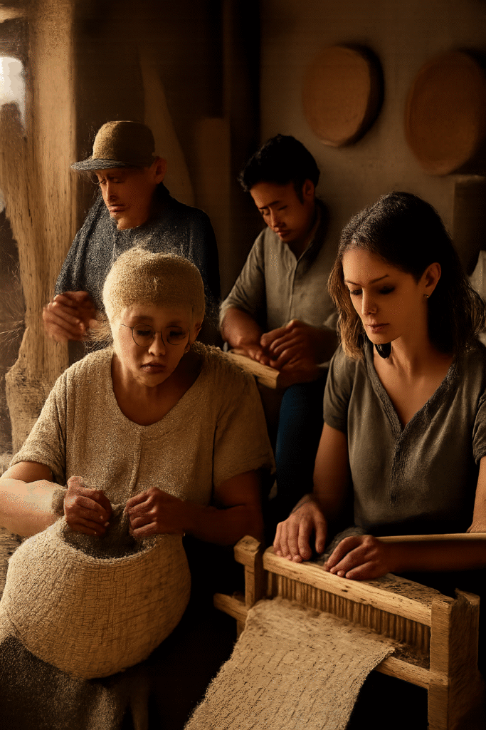 They discovered new natural fibers growing in their region, paired traditional methods with experimental designs, and turned their craft into modern art objects — wearable pieces, lamps, and home décor.